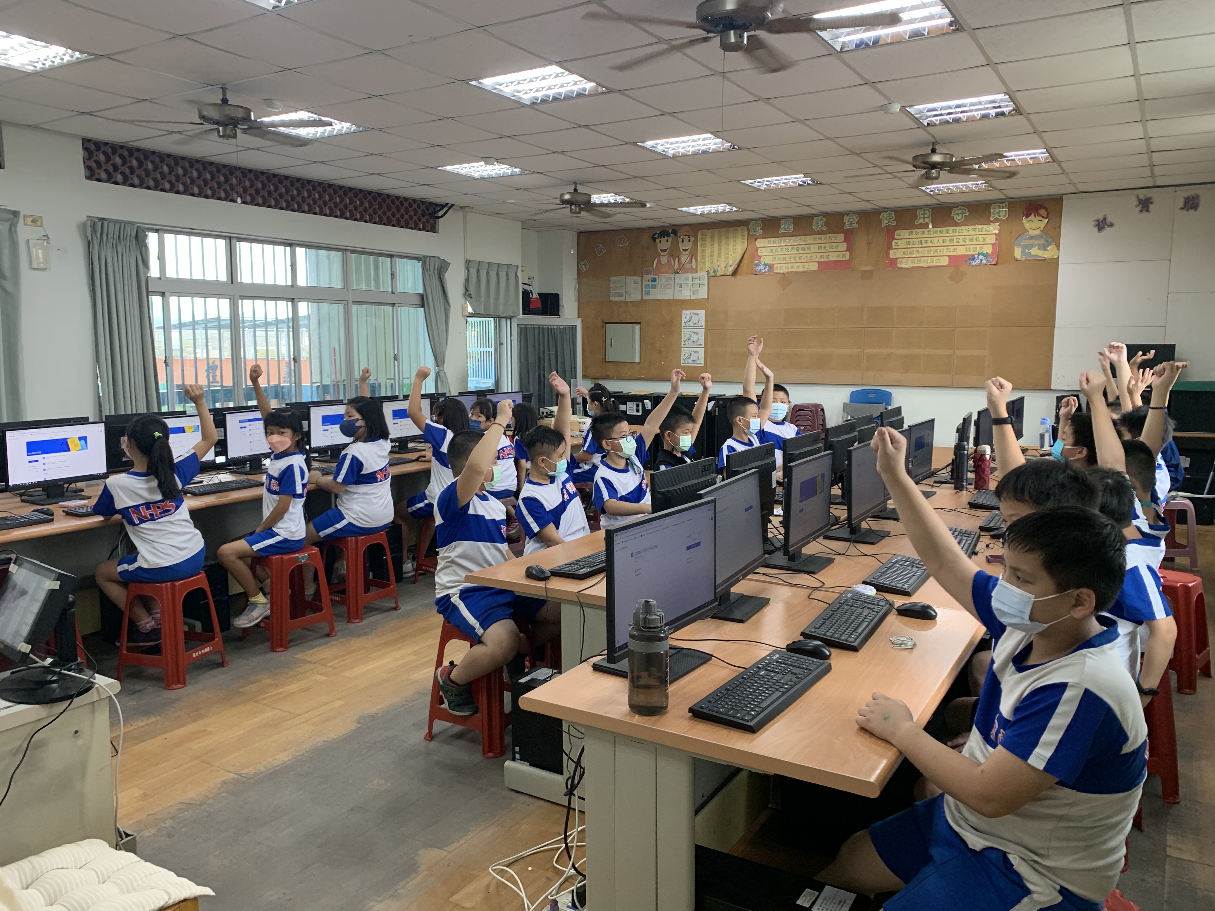為因應疫情,透過電腦課時間,老師在課堂帶學生登入Google Classroom完整的操作步驟,訓練學生登入自己的帳號,...