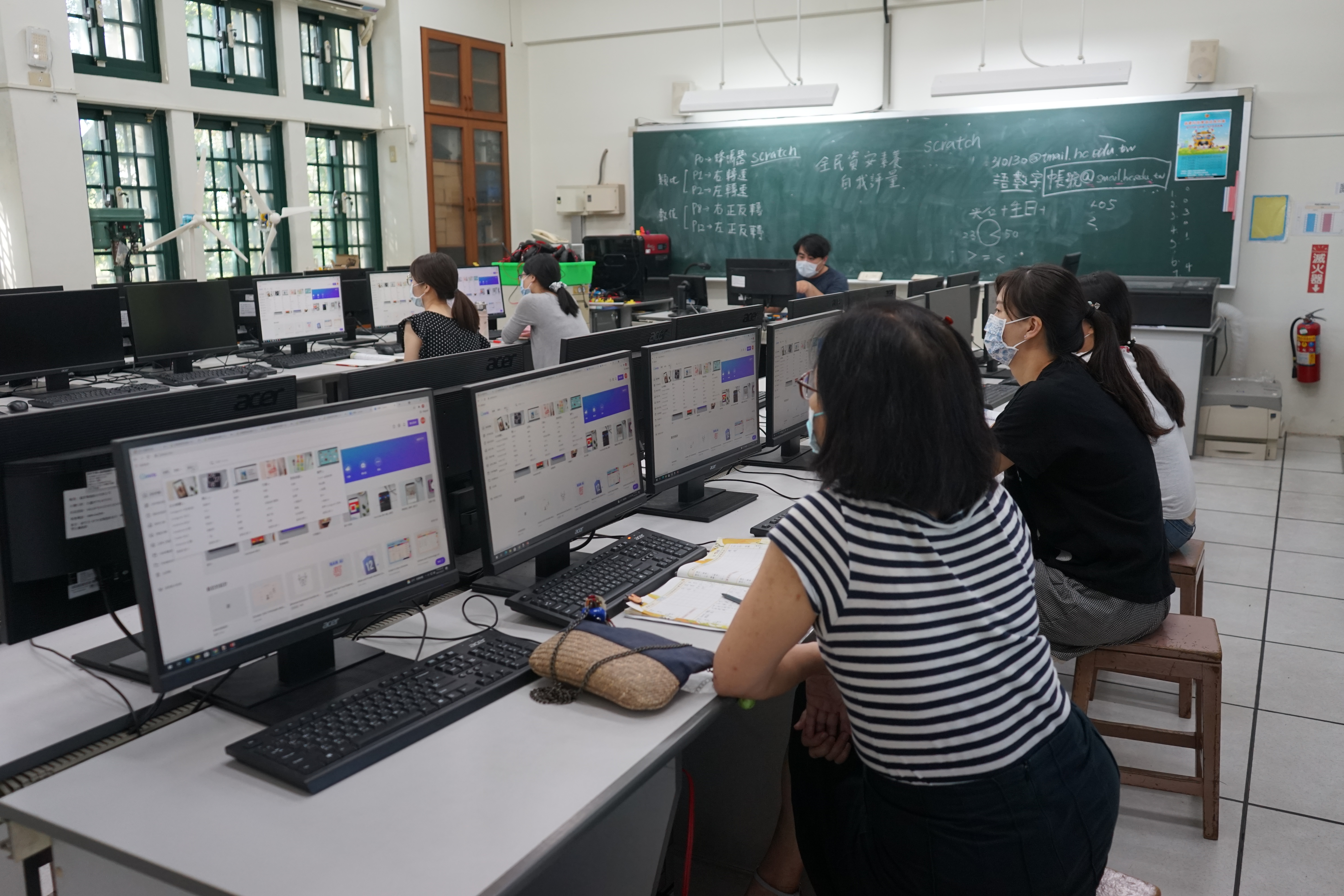 雖然目前疫情趨緩,但是為了以防萬一以及加強教師專業知能,929當日仍有許多老師抽空前往電腦教室學習1Campus網站功能...
