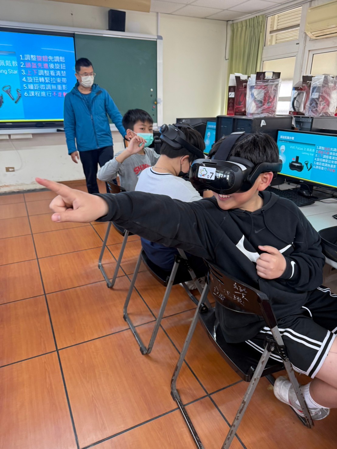 六年級的學生們今天體驗了一堂有趣的VR課。學校特別邀請了青草湖國小的江老師,來指導大家如何使用VR設備。<br />在江...