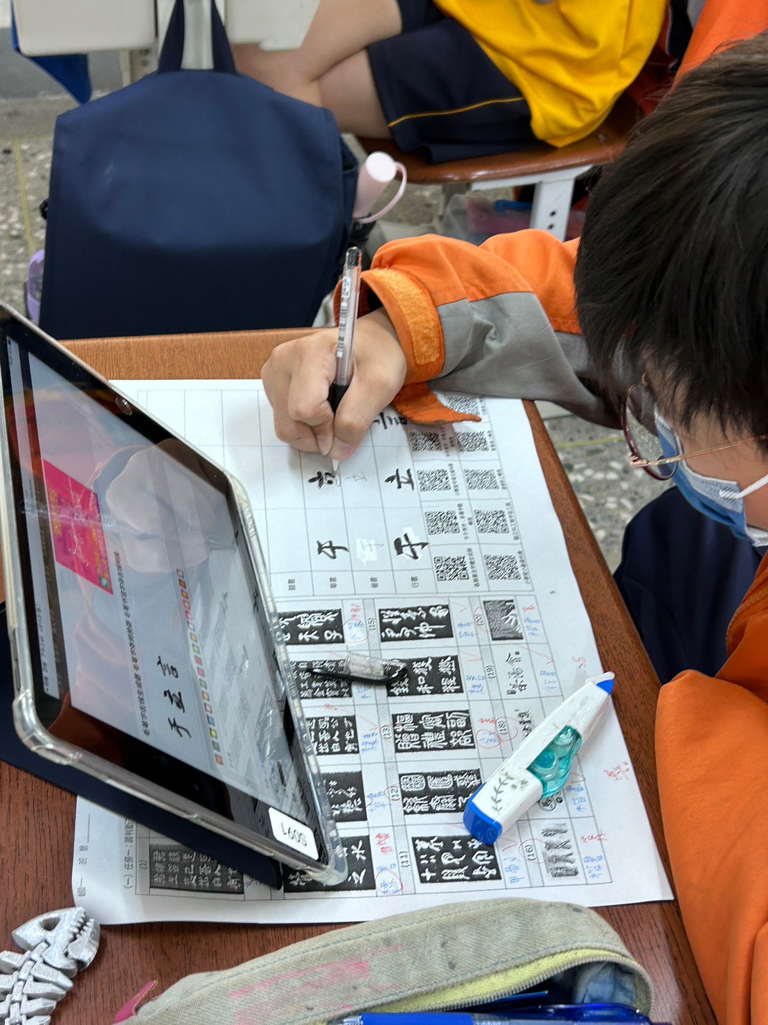 112.04.11(二) 經過三堂文字演變的課程教學,最後給學生一個從自己名字認識字體的任務。學習單上記錄著學生辨識字體...